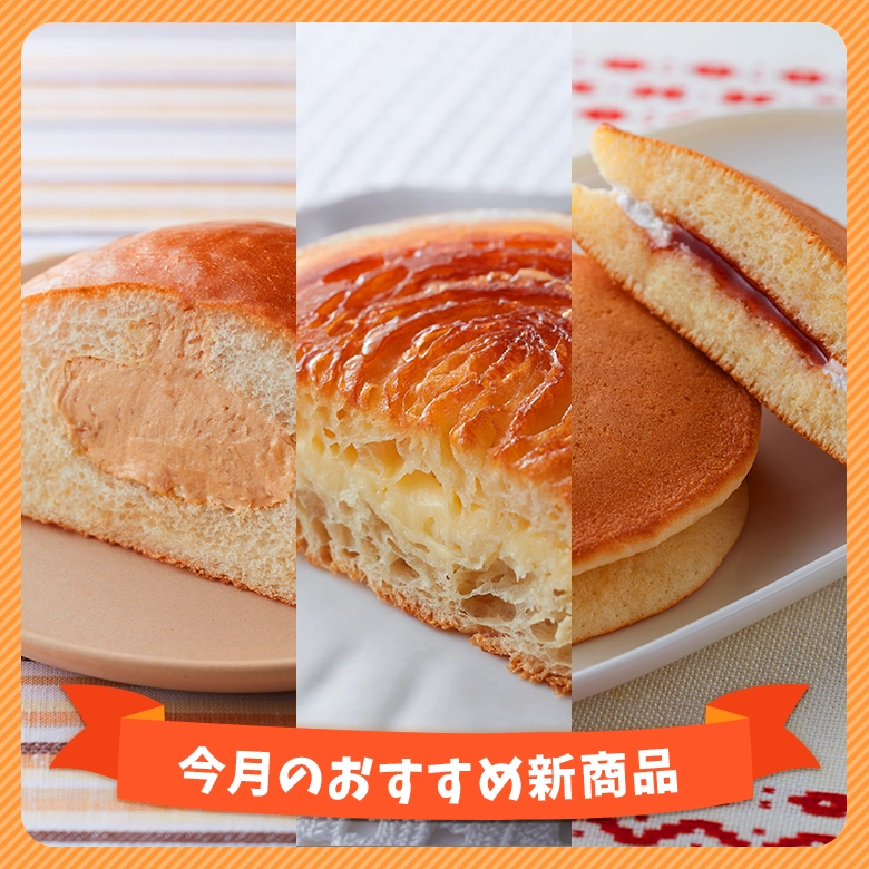 「今月のおすすめ新商品」のページに「特濃メロンパン(ミルククリーム)」、「薄皮U.F.O.焼そばぱん(日清焼そばU.F.O.監修)」、「宇治抹茶蒸しケーキ」を掲載いたしました