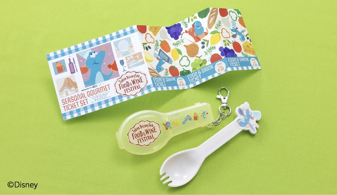 - ・東京ディズニーシー・フード&ワイン・フェスティバル シーズナルグルメチケットセットはイベント対象メニューと引き換え可能なフード&ドリンクチケット3枚と、スーベニアスポークが含まれます。対象メニューと対象店舗については、東京ディズニーリゾート・オフィシャルウェブサイトの「シーズナルグルメチケットセット」のページよりご確認ください。