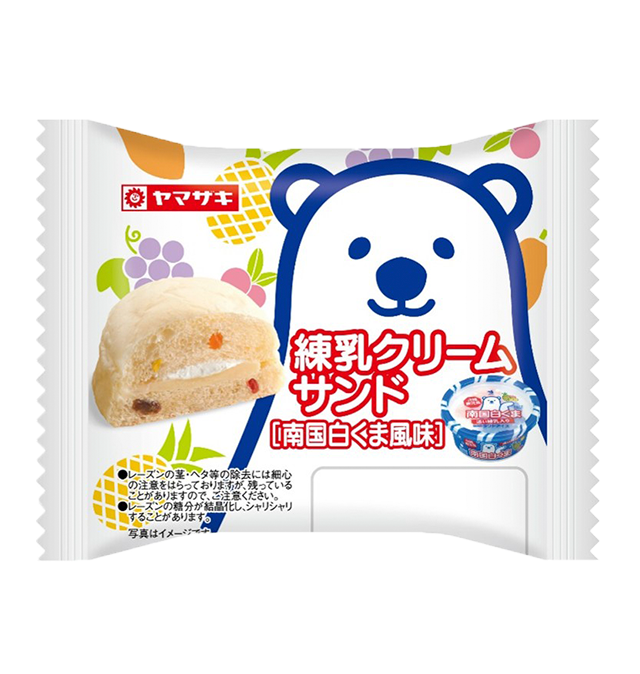 人気アイスの味わいをイメージしました。ミックスフルーツを練り込んだスポンジに、ミルクホイップと練乳クリームをサンドした「練乳クリームサンド(南国白くま風味」も同時発売します。