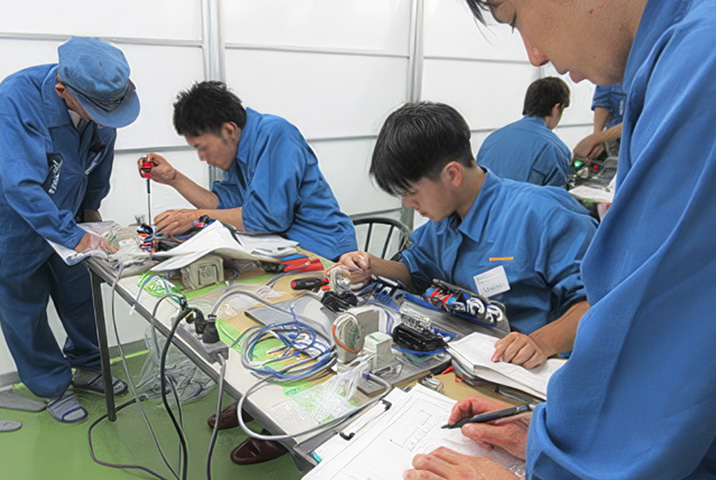 若手社員向けの短期技術研修から、自社研修施設や社外教育機関における長期技術研修まで、段階に応じた研修を実施しています。技術力の向上に加え、新製品開発や品質・生産性向上に貢献できる人材の育成を目指しています。