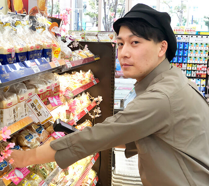 お客様の需要に合わせた商品展開を考え、ヤマザキの最前線としてお客様に支持される店舗運営を目指し、日々業務にあたっています。