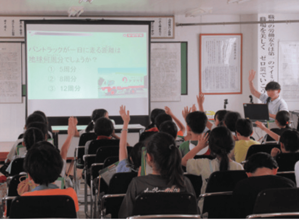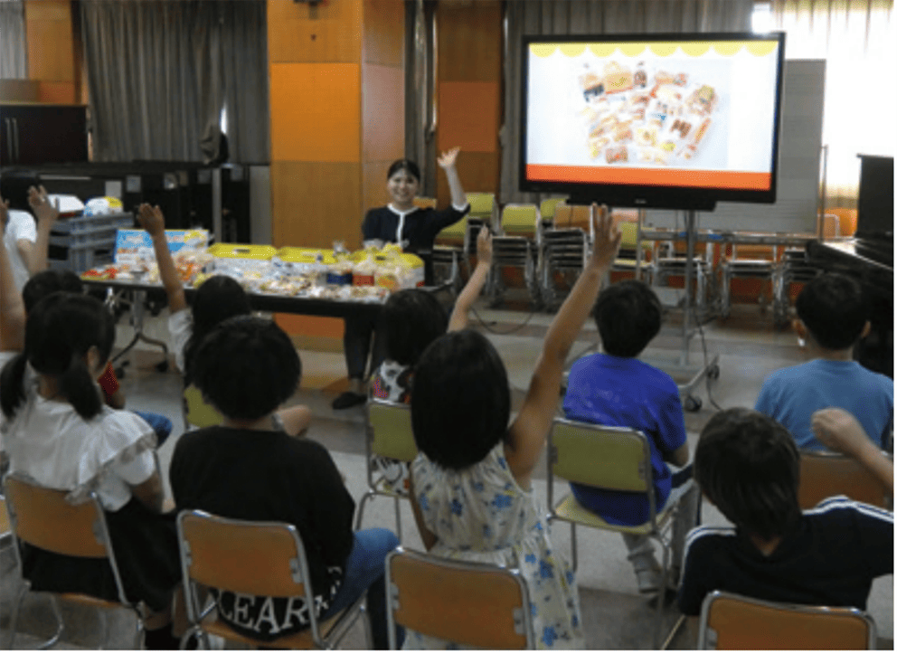 当社は、環境問題について次代を担う子どもたちに学んでもらう機会づくりを強化したいという自治体の方針に賛同し、学習を希望する小学校、中学校で出張授業を行っています。2024年は食品ロス問題やプラスチックごみ問題に対応する当社の取り組み等について紹介しました。