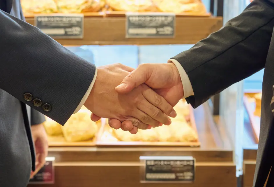 山崎製パン株式会社は、長年にわたり培ってきた製パン技術と、安定した供給体制を基盤に、お客様の新規事業へのチャレンジを力強くサポートいたします。 限られたスペースからの開業や未経験の方でも、安心してスタートできる体制を整えております。地域に愛される“焼きたてパン”のお店づくりを、私たちとともに実現しませんか。 進化する冷凍生地のメリット 誰でも簡単&スピーディーに焼きたてパンを作れます 時短・人手不足対策・人件費抑制 商品ラインアップ 多彩な商品ラインアップで1年中お客様を飽きさせない売場づくり おいしい!多彩な商品群 出店事例 さまざまな立地で期待できる導入メリット 立地別導入効果(メリット) 安心・充実のサポート体制 ベーカリーを知り尽くしたヤマザキならではのサポート体制 段階に応じた丁寧なサポート プランのご案内 How to start ご契約から開店まで